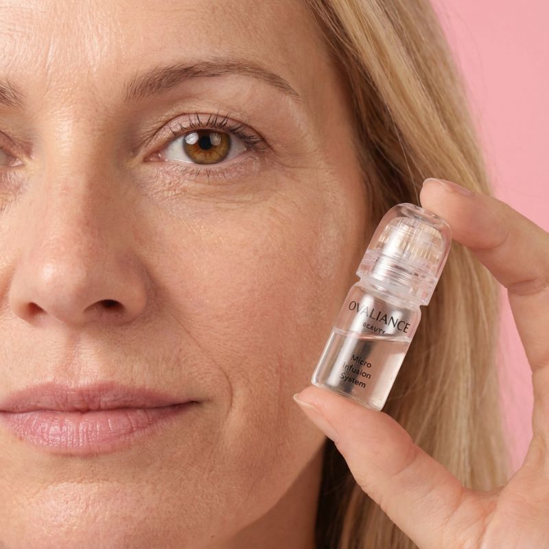El secreto de una "Piel de Cristal" (Glass Skin) sin salir de casa Olvídate de aplicar cremas que solo hidratan la superficie. El Kit de Micro-Infusión Ovaliance es un dispositivo de vanguardia que combina la eficacia del microneedling clínico con la comodidad de un tratamiento casero.